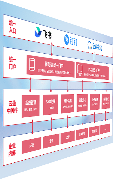 对协作平台提供支持服务,,支持企业应用与协作平台对接,,,包含组织同步、、、、消息集成、、待办集成等。。支持目前主流的协作平台:钉钉、、企微和飞书。。